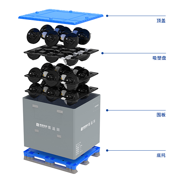 吸塑盘仿形设计,产品承压,面接触,均匀受力。产品排列水平借位,上下借位,收容数最大化。吸塑盘采用HDPE材料,充分考虑成本、使用场景、寿命等因素。吸塑盘清理方便,回收比高,便于回收。 外箱尺寸充分考虑搬运、存储环节的操作场景,适配各种物流设备,减少翻包环节,可原包装直接上线。围板开门,符合人体工程学,便于取放产品,操作更高效。 内嵌RFID芯片满足信息化及数智化应用。 安全性高,操作便捷,可循环且使用寿命长,有效降低物流成本。